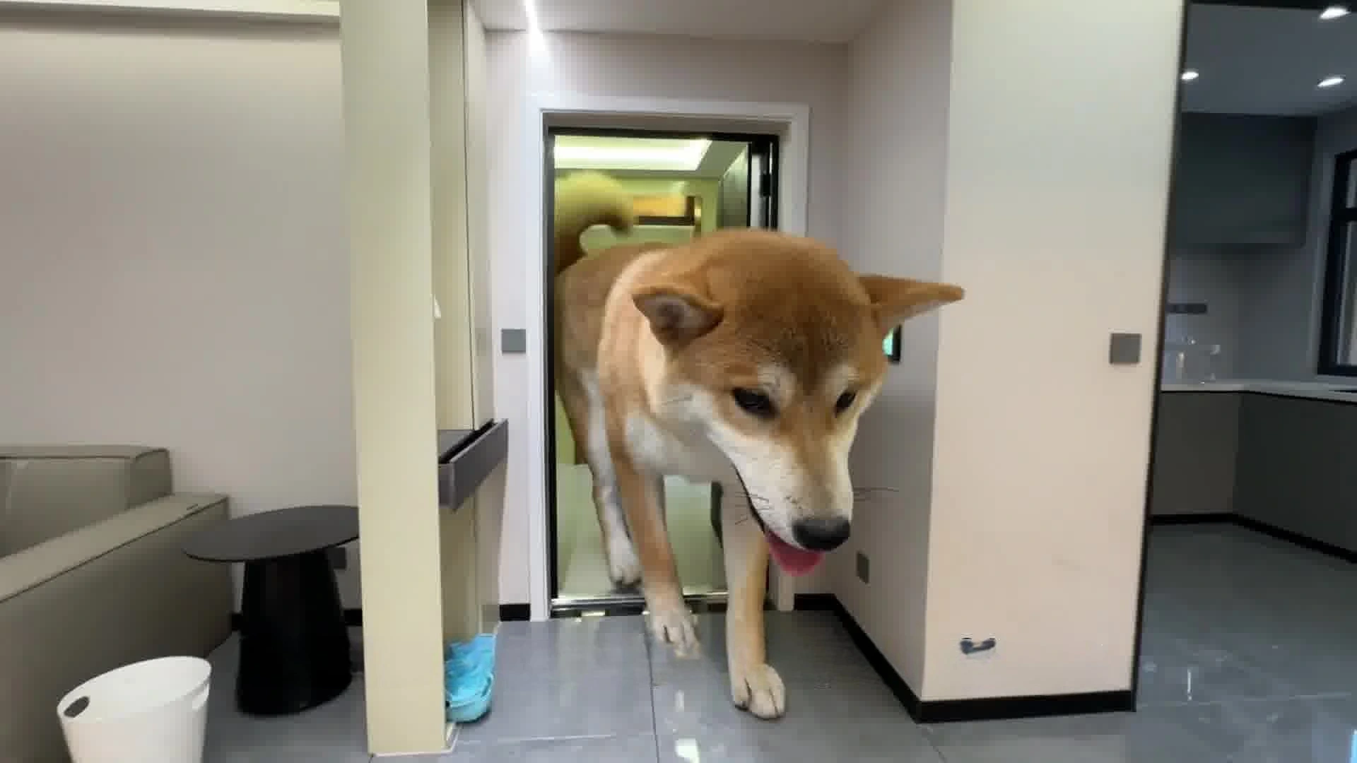 The dog excitedly steps through the front door of his very own miniature home, ready to explore his cozy new space. The attention to detail in the entrance makes it feel like a real, full-sized house—just dog-sized!