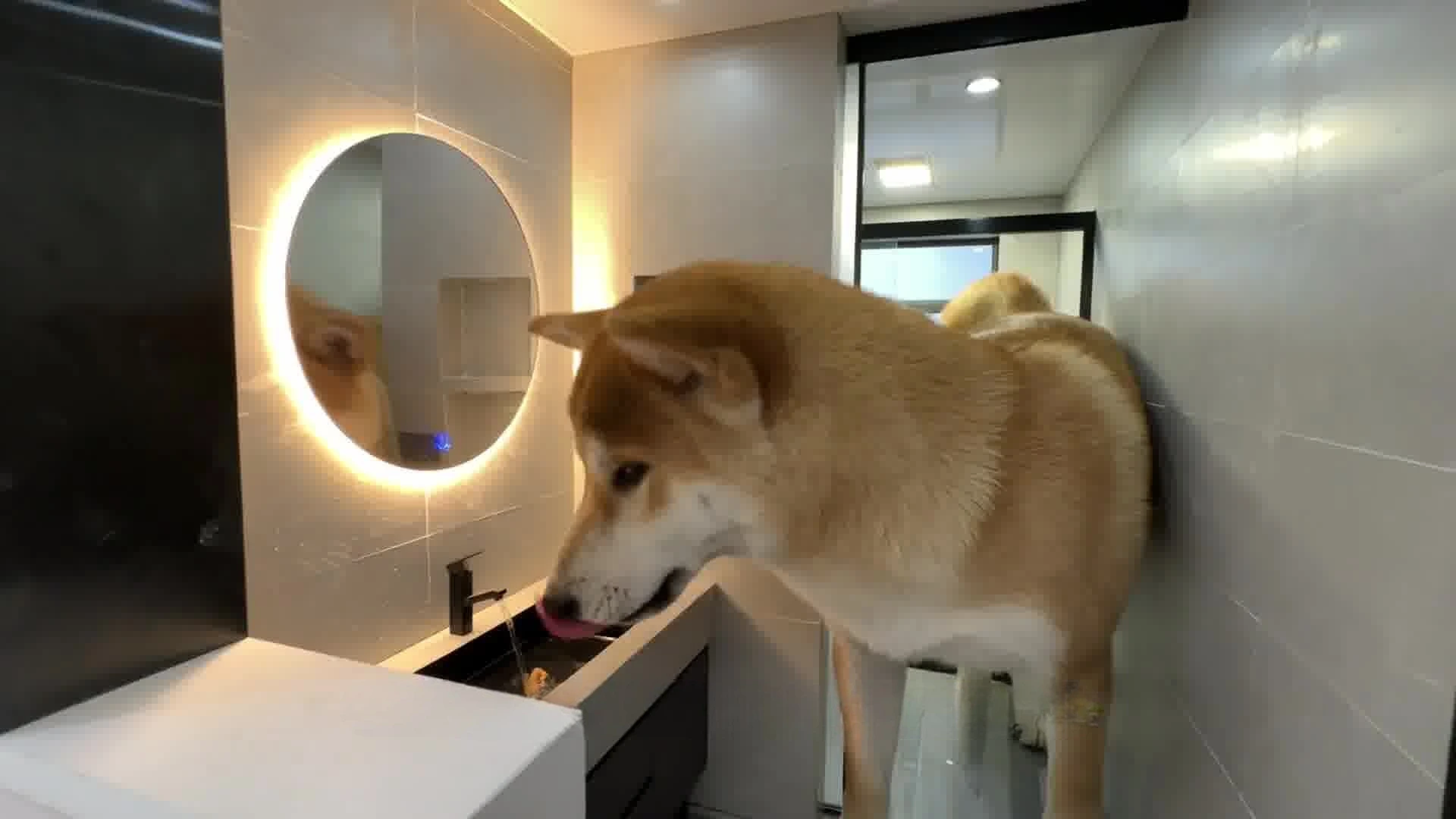 Even the bathroom is designed for luxury! The dog drinks water straight from the sink, showing off just how functional and well-planned this mini home truly is.