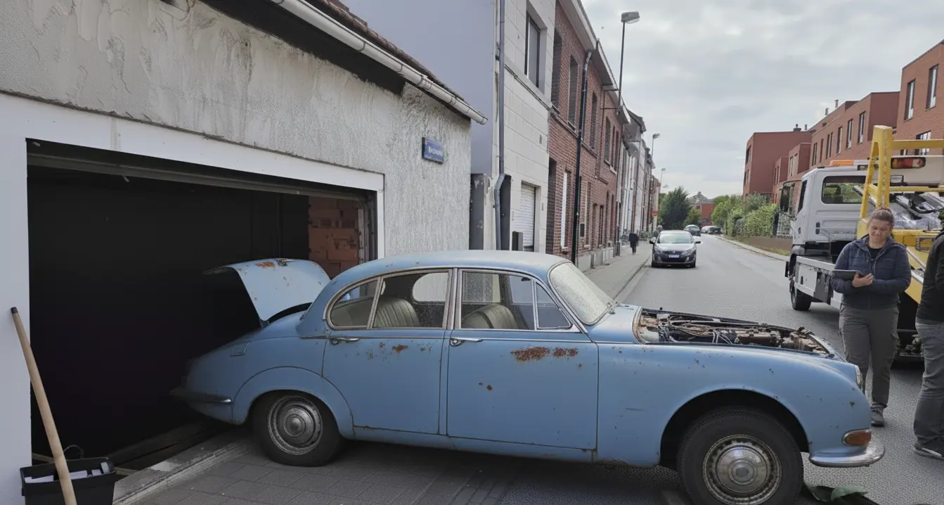 The Jaguar was uncovered in the former home of the Oomske chip shop in Kessel-Lo, which Rentmeesters was clearing at the request of a real estate agent. “The garage was completely packed, and while cleaning it out, we discovered a pit beneath the floor. Old houses often have pits for car repairs. But this time, there was an entire car inside.”