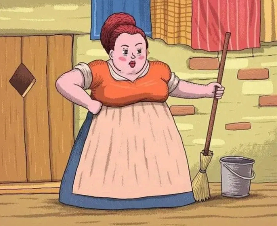 A cat is pretty much the perfect companion at home. The woman in the picture might feel the same as she’s sweeping her floor, though she hasn’t yet noticed her furry companion.