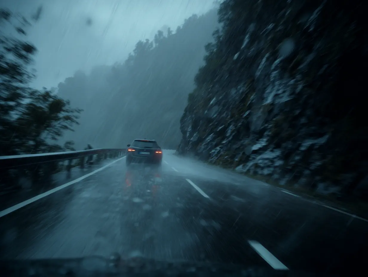 During the incident, the weather was downright miserable. Rain poured down in sheets. The road was drenched and dangerously slick. Anyone with even a shred of common sense would slow down — especially on a route that twists across mountain ridges more than 1,000 meters above sea level.