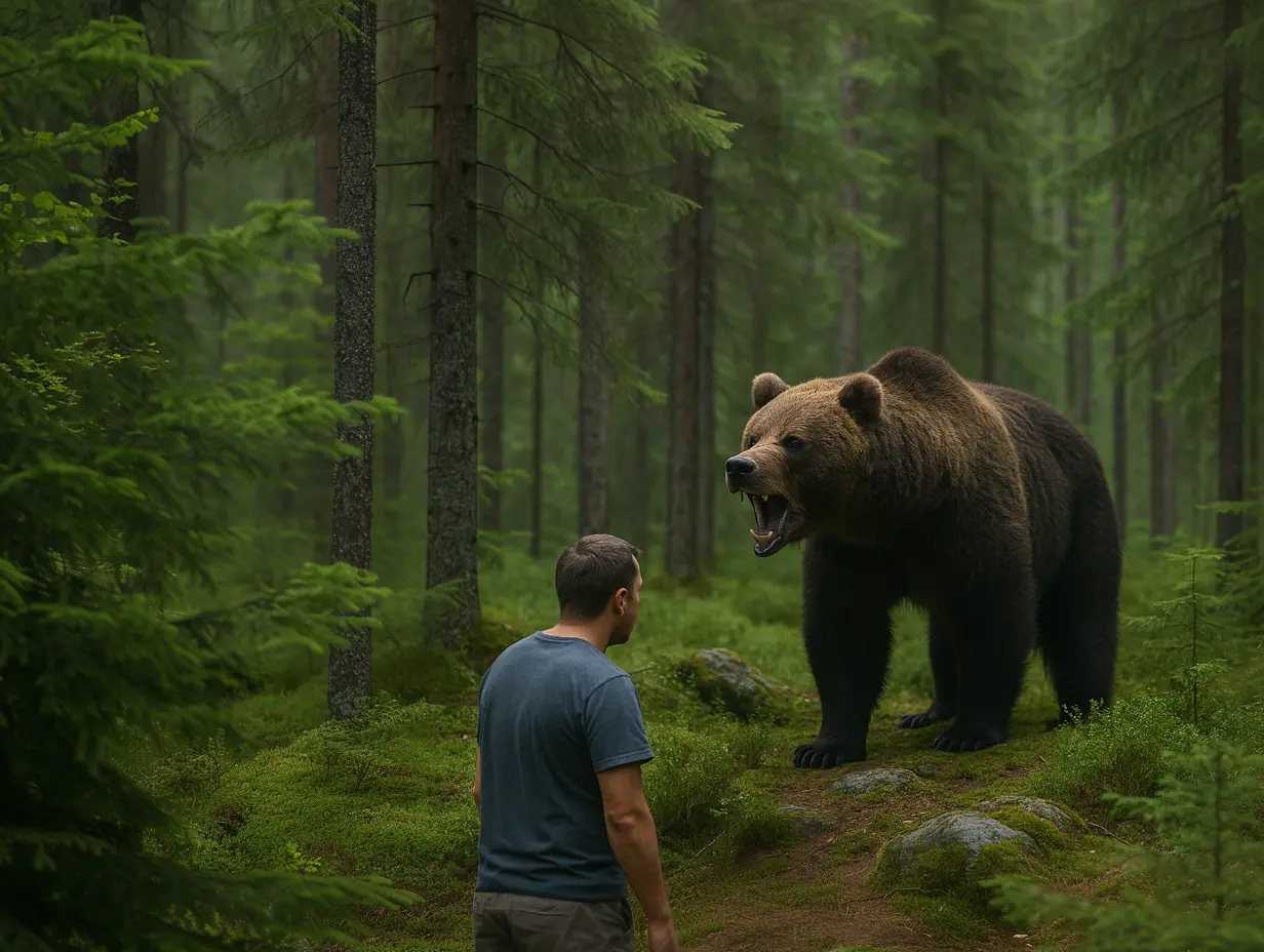 But the bear—there it was, right in front of him. Could it know something he didn’t? His mind raced. The odds of surviving alone seemed slimmer with each passing minute. What if the bear was leading him to safety? His heart beat louder than ever, and without fully understanding why, David took a step forward. He was going to follow the bear.