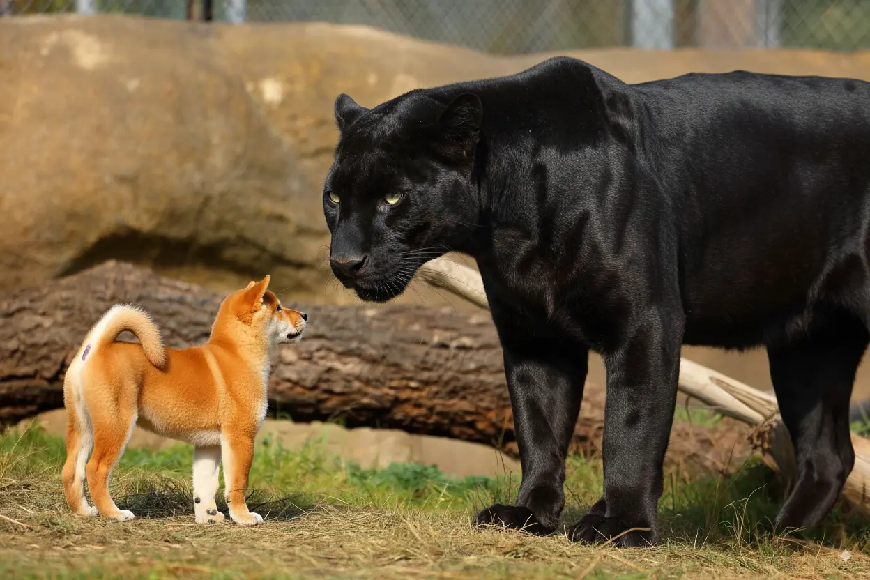 Instead of lunging, the panther slowly raised its head and locked eyes with the puppy. The little shiba inu wagged its tail and walked even closer, as if meeting a new friend. Zoo workers shouted and prepared to tranquilize the panther.