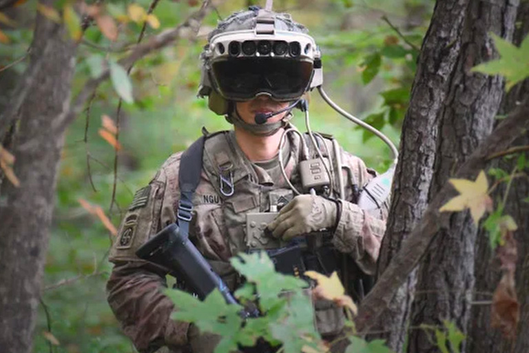 The U.S. Army is experimenting with an augmented reality headset called the IVAS. It provides a wide variety of capabilities to a soldier, including the ability to place waypoint marks, check a 3D-map, see better in the dark and even the ability to train against virtual soldiers.