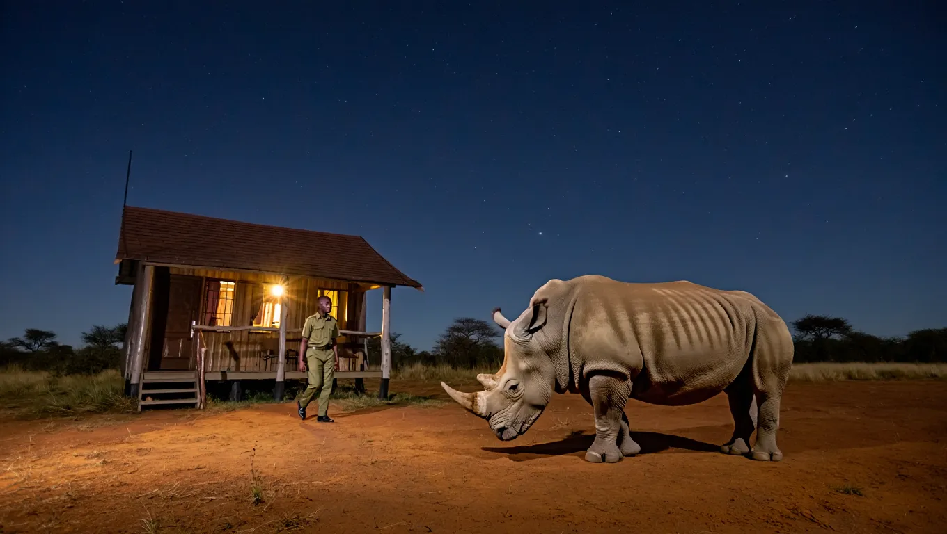 Duma didn’t move. The rhino stood perfectly still, facing the porch. Not grazing. Not agitated. Just waiting.